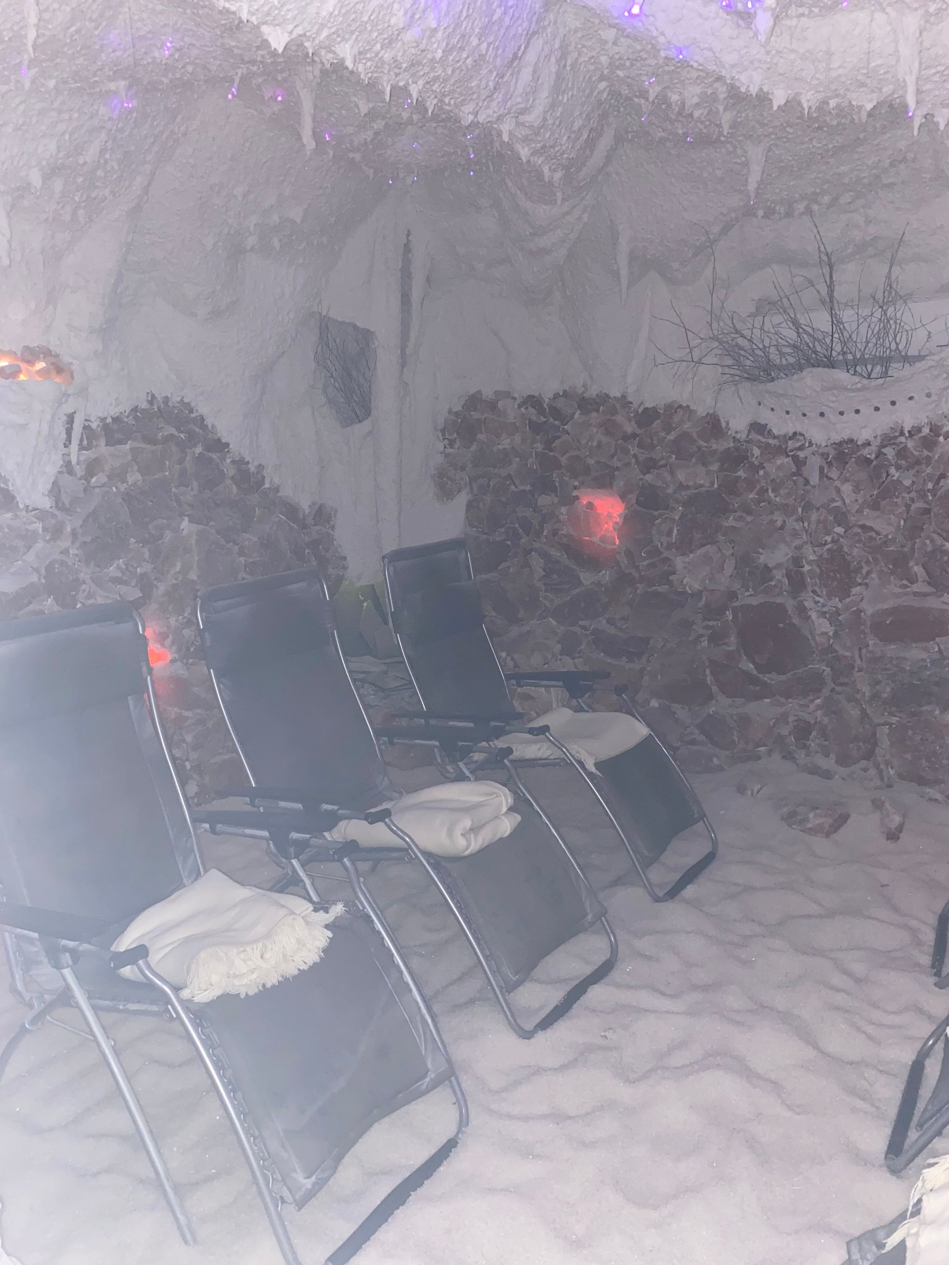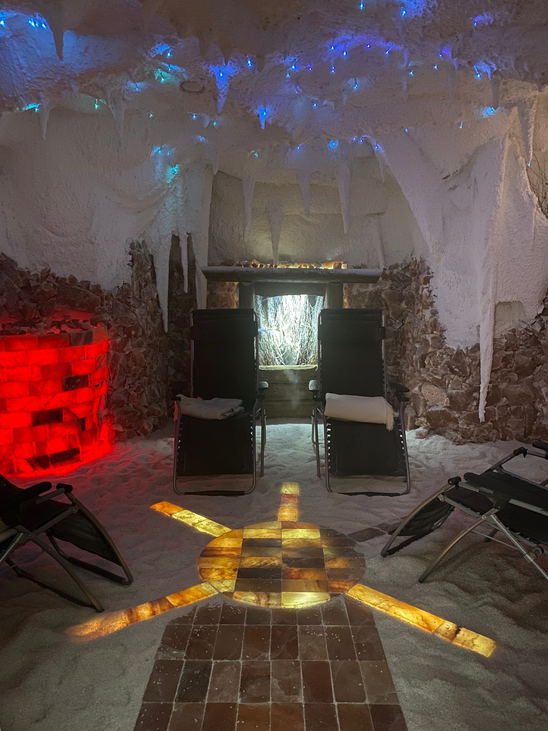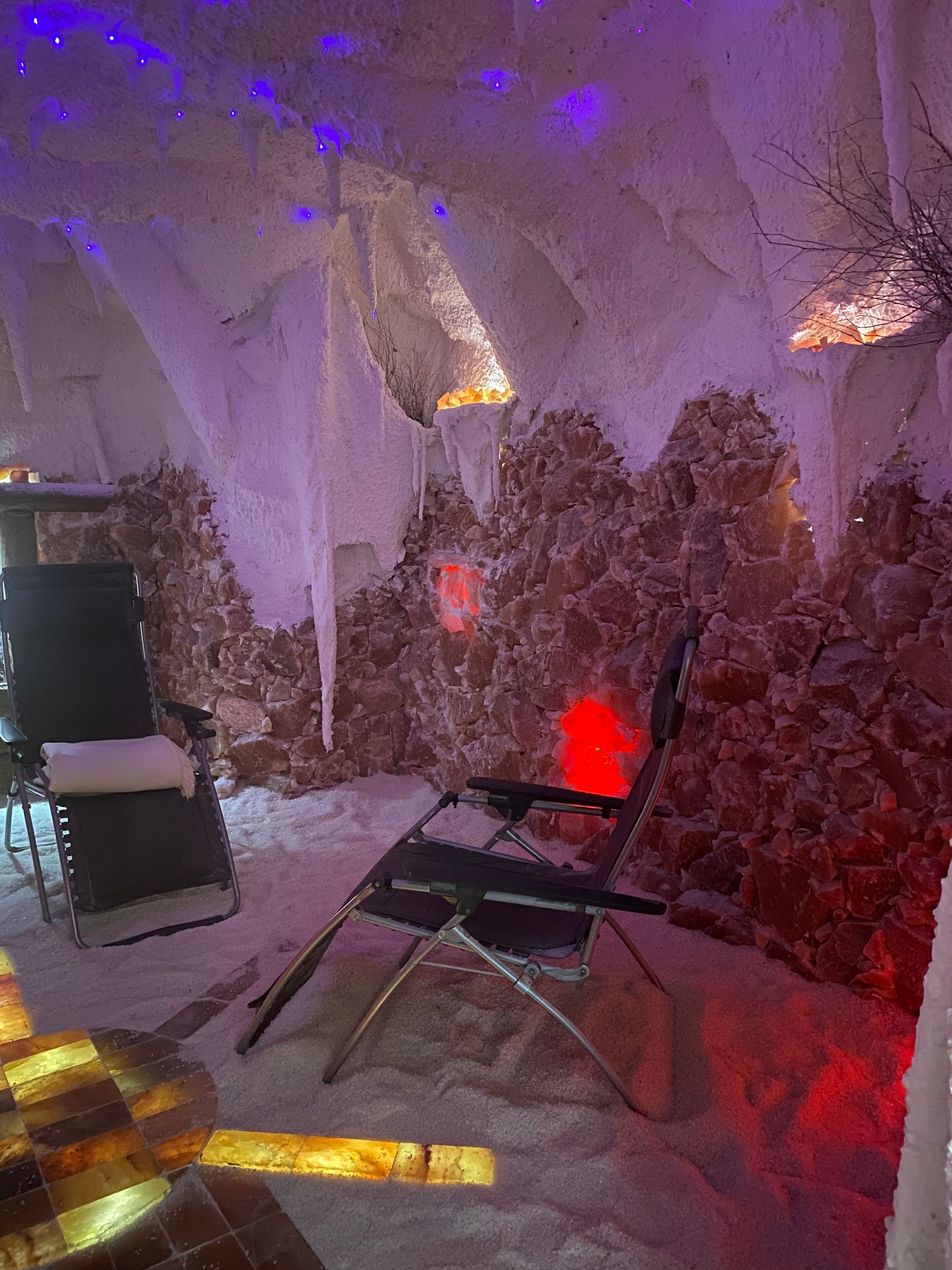 Eine Salzgrotte ist ein spezieller Raum, der mit Salzsteinen und Salzwänden gestaltet ist, um eine entspannende Atmosphäre zu schaffen. Das Meeres- und Soleklima kann aufgrund der antiallergischen, antibakteriellen und entzündungshemmenden Wirkung von Salzen, eine positive Auswirkung auf Atemwegserkrankungen, Allergien oder Hautproblemen aufzeigen.